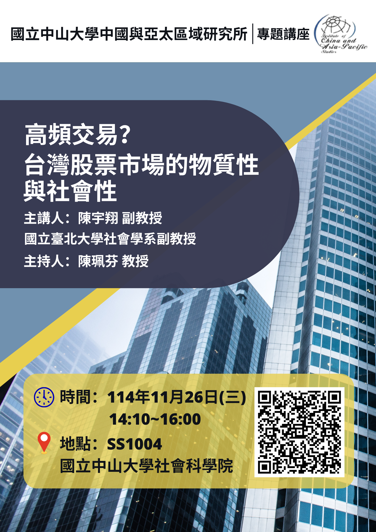 演講題目:高頻交易? 台灣股票市場的物質性與社會性